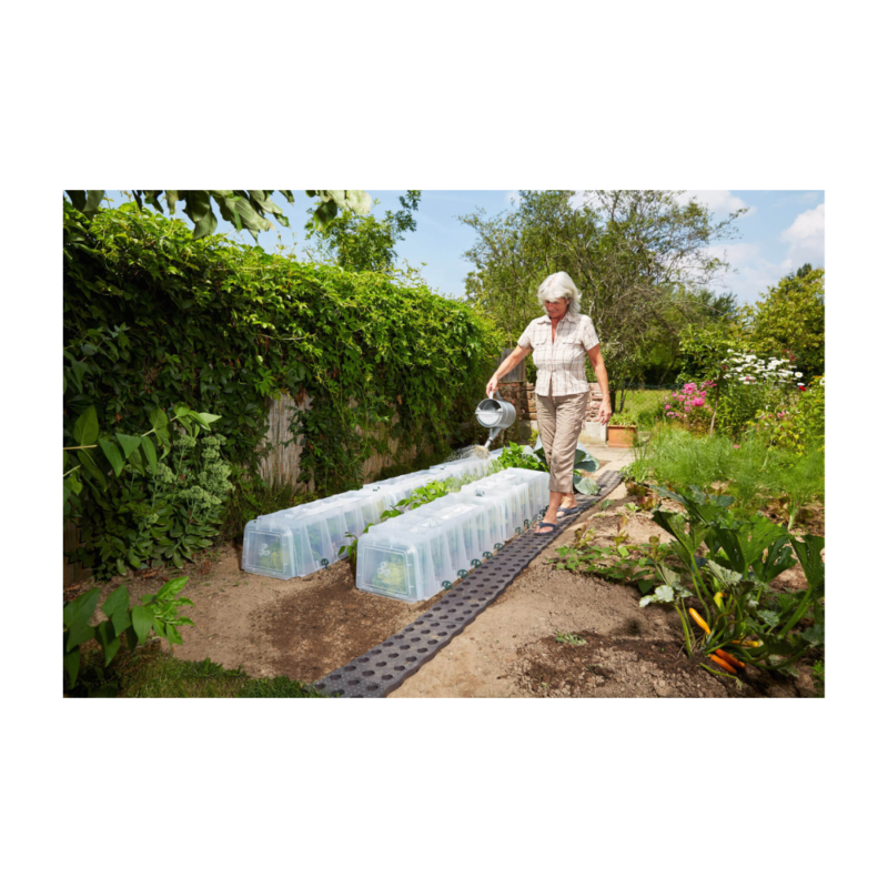 - Les tunnels de culture pour potager permettent de récupérer et de réguler l’écoulement de l’eau de pluie, favorisant un arrosage naturel.