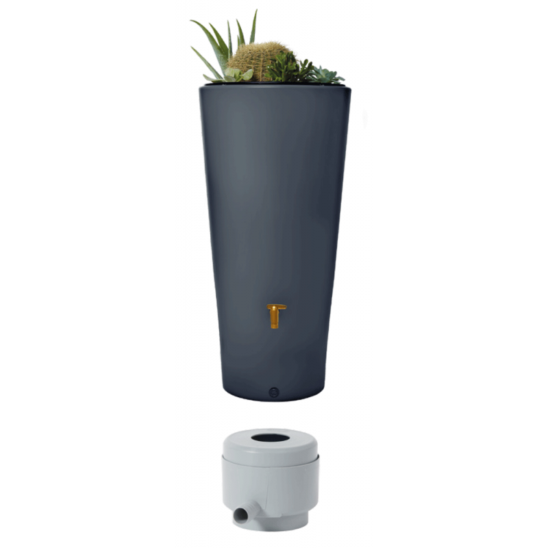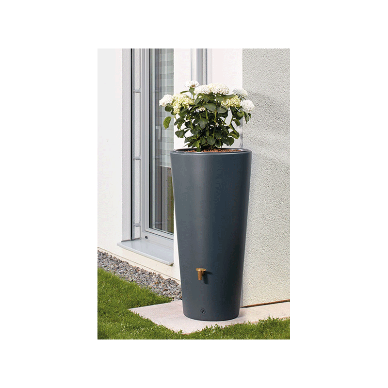 Le récupérateur d’eau de pluie Vaso de Garantia 220 litres a deux fonctions : la récupération d’eau de pluie pour l’arrosage des plantes et la décoration grâce à sa ligne contemporaine et son bac à plantes intégré et amovible. Le réservoir Vaso 220 litres pour la récupération d’eau de pluie sera une pièce maîtresse de la décoration de la terrasse et du jardin.
